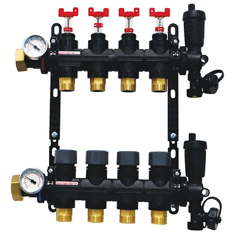 LivrĂ© avec dĂ©bitmètres, purgeurs d’air automatiques et supports de collecteur