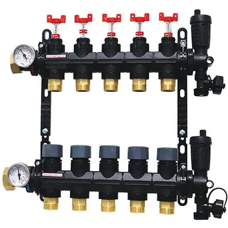 Collecteur Plancher Chauffant Composite Femelle 1″ (26/34) – 5 Départs Mâle 3/4″ (20/27) EK – Somatherm