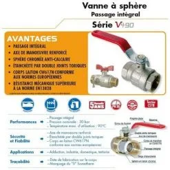 Vanne à Sphère PN30 Passage Intégral ACS Poignée Rouge à Purge M/F 3/4 »(20×27) SOMATHERM