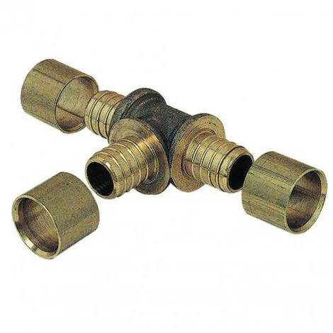 Raccord pour tube PER à glissement té égal.Bague en laiton de longueur identique à la tétine pour un sertissage optimum. Tétine annelée garantissant une bonne accroche du tube. Corps en laiton : la garantie d’un laiton de qualité en onformité avec la norme européenne. Fiable, sûr et rapide. Rapidité de montage et facilité d’assemblage : par sa bague réversible et par le simple glissement de la bague sur le tube. Faibles pour tube PERtes de charge : son diamètre de passage réduit les pour tube PERtes de charge. Résistance à la corrosion.