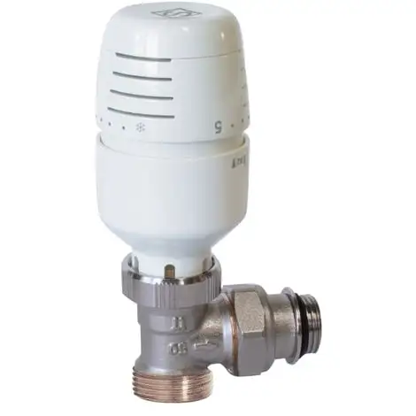 Corps laiton nickelé. Plage de réglage de 6,5° à 28°C. Montage équerre.